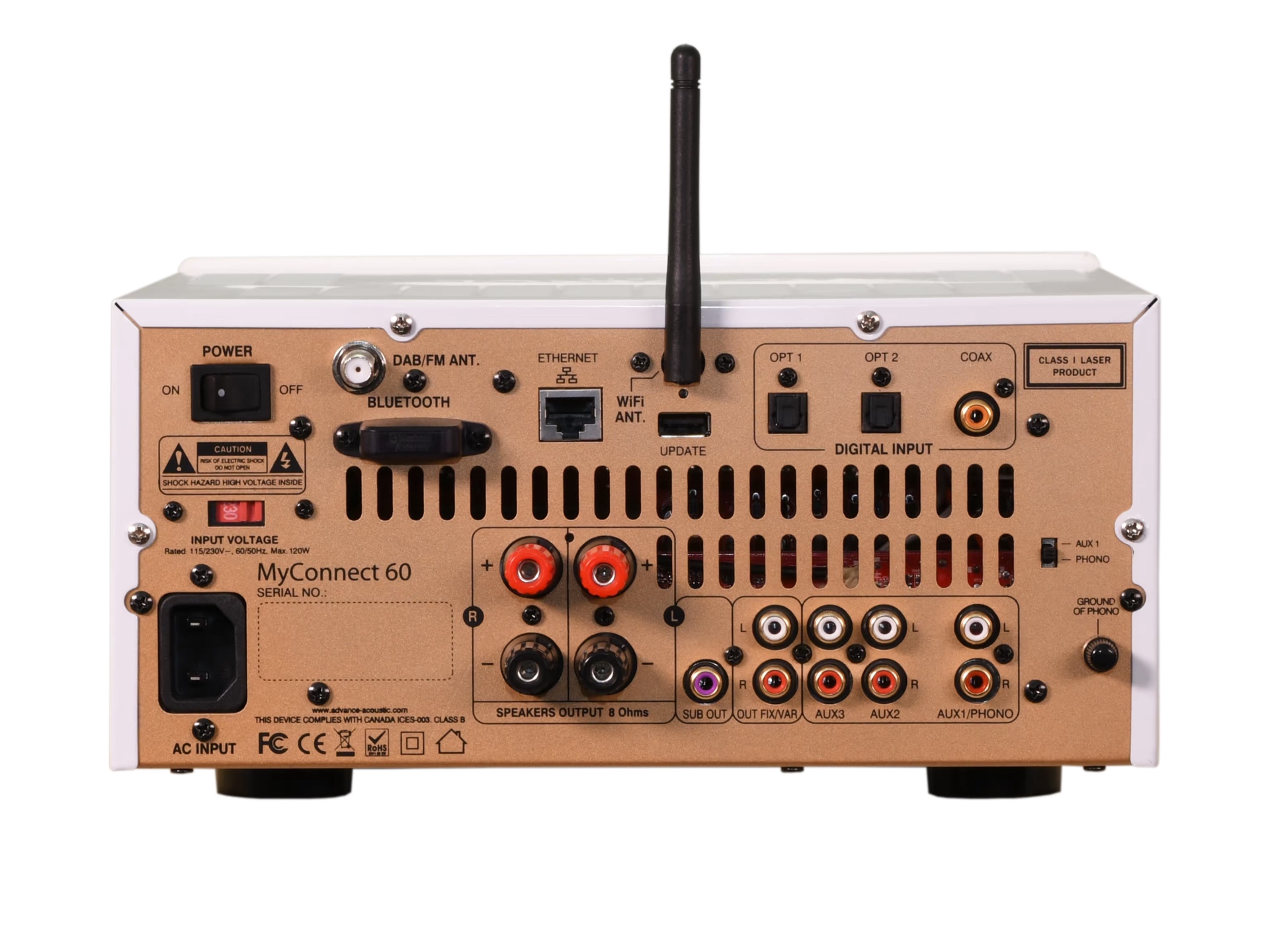 Når det kommer til alt i ét systemer, er der hvor andre ofte kommer til kort, ofte forstærkersektionen. Dette essentielle komponent skæres ofte ned på, fordi alt skal passe ind i et lille kabinet. Hos Advance har de valgt at forblive tro mod den teknologi, der benyttes i deres traditionelle integrerede forstærkere. Advance Paris MyConnect 60 med Elac Debut DB63 bruger en ægte klasse AB-forstærker med en nominel effekt på 2 x 70 W (ved 4 ohm) og 2 x 48 W (ved 8 ohm). Anlægget har også en kraftig ringkerne transformator i strømforsyningen. En byggekvalitet, man sjældent finder i prisklassen.