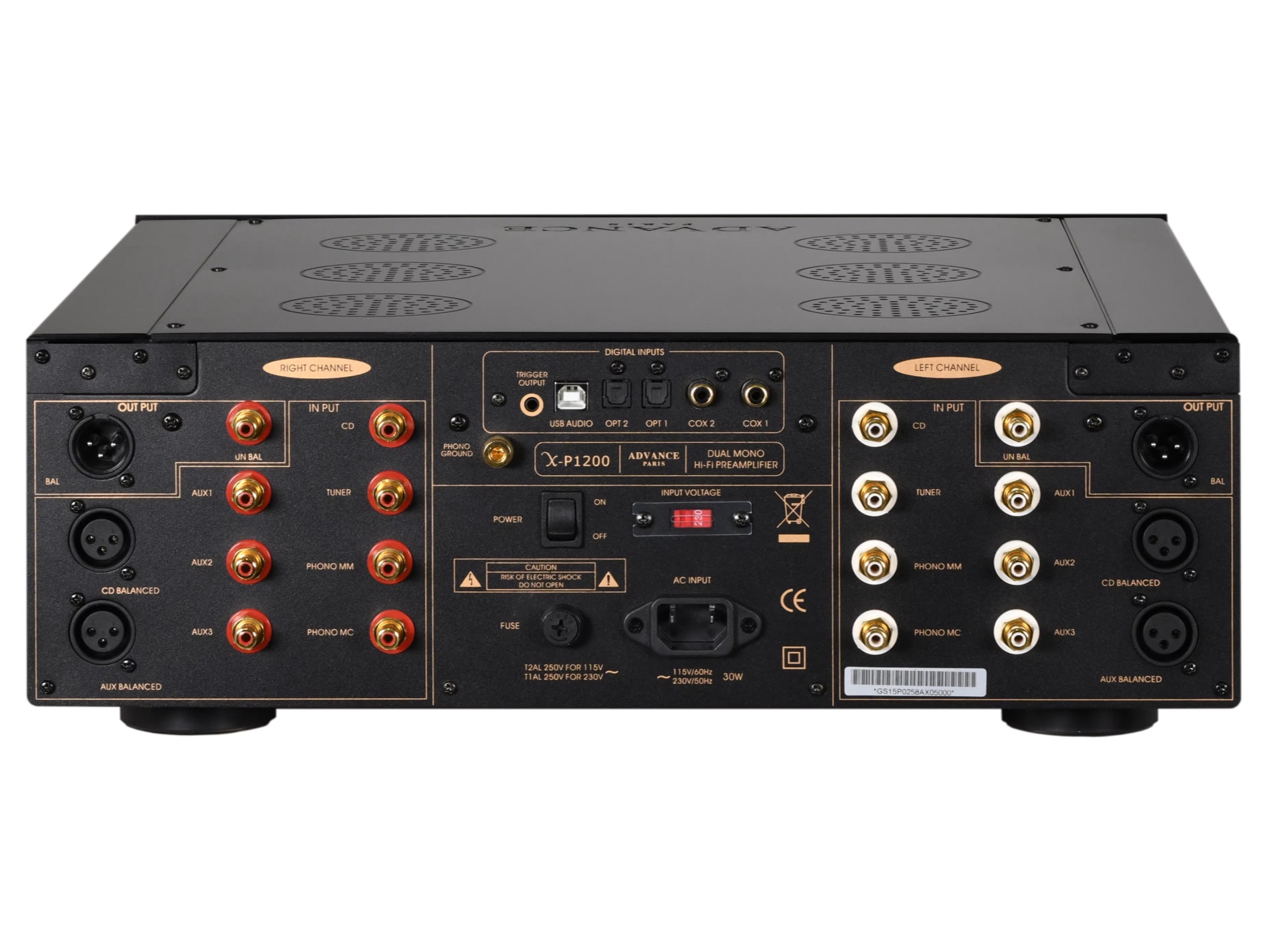Designet af Advance Paris X-P1200 er rent, ligetil og fri for unødvendigt rod. Kernen er det sofistikerede dual-mono design, hvilket i bund og grund betyder to forforstærkere i et enkelt kabinet. Dette illustreres tydeligt af den isolerede konstruktion af de to kanaler, der er synlige både internt og på bagsiden af enheden.