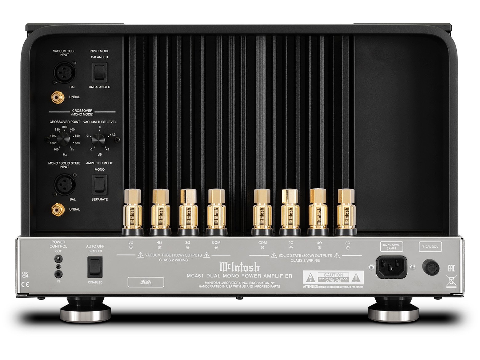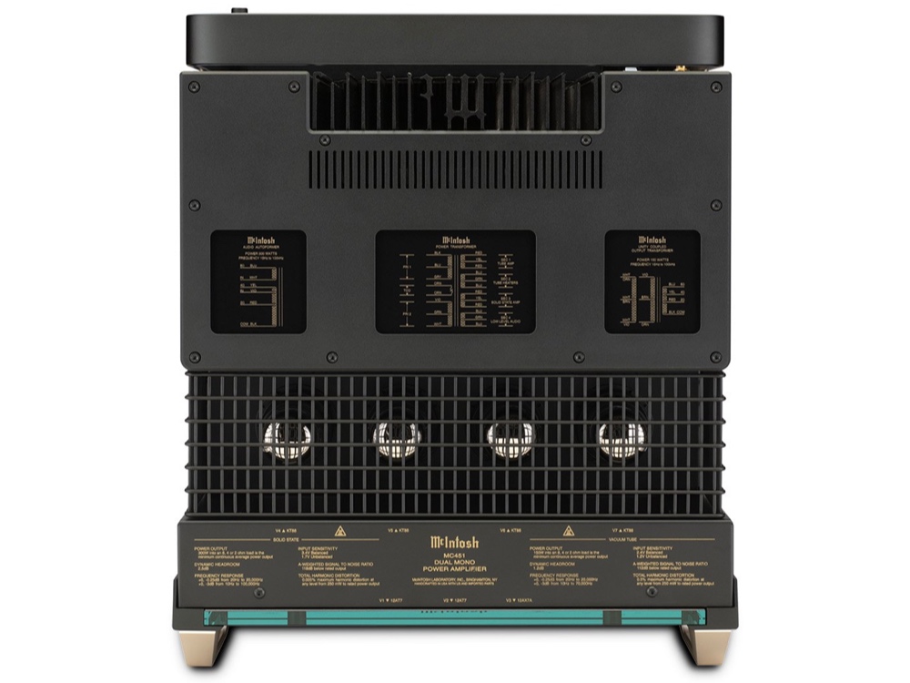 MC451 består af en 150 watt vakuumrørforstærker og en 300 watt solid state-forstærkersektion, hvilket er mere end nok kraft til at drive stort set alle højttalere. Vakuumrørsektionen driver højttalerens mellemtone- og diskant, mens solid state-sektionen driver bassen. 150 watt rør sektionen drives af fire KT88-udgangsrør, der er placeret under et aftageligt trådbur, plus to 12AT7- og et 12AX7A-signalrør. Den bruger McIntosh patenterede Unity Coupled Circuit-udgangstransformer til at levere sine fulde 150 watt, uanset om højttaleren har 2, 4 eller 8 ohm impedans.